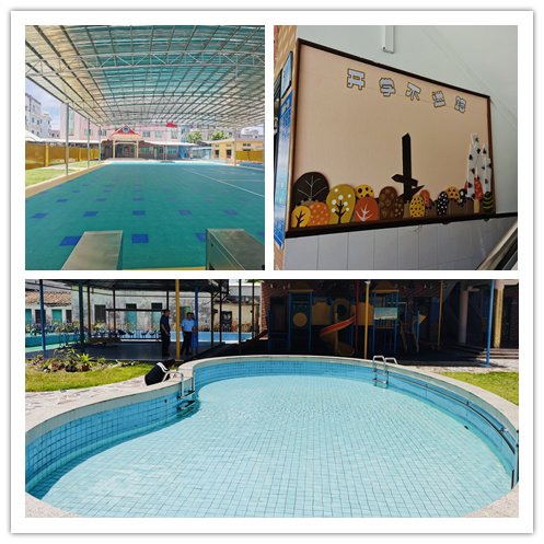 博賀鎮(zhèn)中心幼兒園創(chuàng)辦于1999年。園區(qū)建筑總占面積為3109平方米,園舍建筑面積1871平方米,戶外活動場地2205平方米,其中綠化面積1241平方米,綠化覆蓋率40%。園區(qū)環(huán)境優(yōu)美,園舍布局合理。園區(qū)建有綜合樓一幢,分別設(shè)有園長室、衛(wèi)生保健室、圖書室、音樂室及各種活動室。戶外設(shè)有游泳池、玩沙池和采用西班牙橡膠材料建成的運動場。今年暑假的園區(qū)擴改建翻新工程涉及幼兒園園區(qū)陳舊、廢棄校舍的拆除;戶外活動操場上方500平米不銹鋼遮陽棚的安裝;園區(qū)內(nèi)校園文化走廊的翻新;戶外活動室的擴建等內(nèi)容。擴建翻新工程完成以后,不僅能營造優(yōu)雅的教學(xué)環(huán)境,增添校園文化的多樣性,還為校園安全提供了更多的保障。